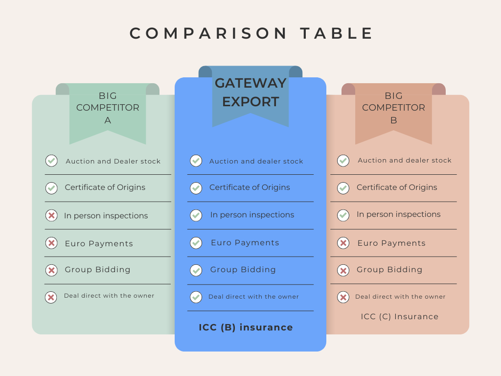 Gateway Export is a specialist in the Cyprus market. We can export vehicles to you direct from used car dealers or auctions in Japan. See below our point of difference.